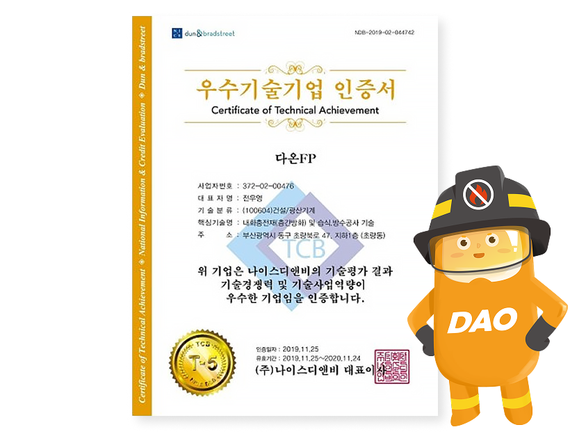 전문건설면허보유 / 내화충진재 시험성적서 보유